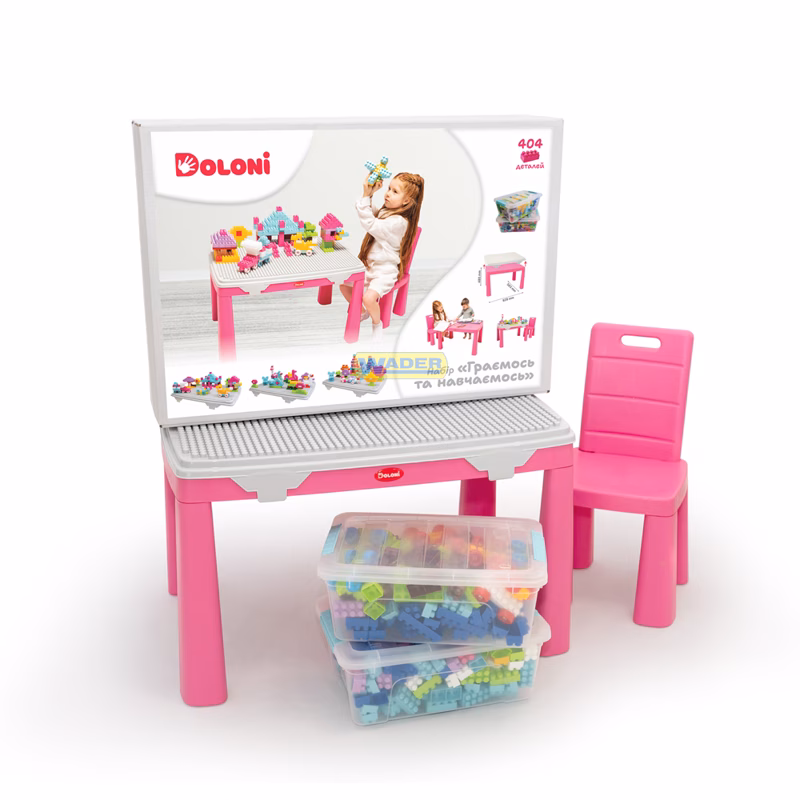 Детский стол со стулом и игровой накладкой + 2 набора конструктора Doloni 04660/3