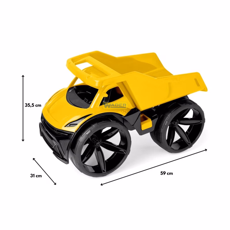 Познакомьтесь с Maximus – современным самосвалом из серии транспортных средств будущего, который сочетает стильный дизайн и высокое качество исполнения деталей. Этот большой жёлтый самосвал длиной 59 см привлекает динамичными линиями кузова и большими матовыми колёсами, создавая настоящий футуристический образ.
