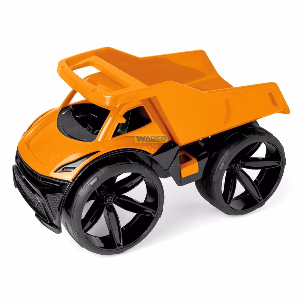 Maximus — это современный самосвал яркого оранжевого цвета, который сочетает стильный дизайн и высокое качество деталей. Его футуристичный кузов с динамичными линиями и большими матовыми колесами с контрастными блестящими дисками привлекает внимание детей и развивает воображение во время игры.